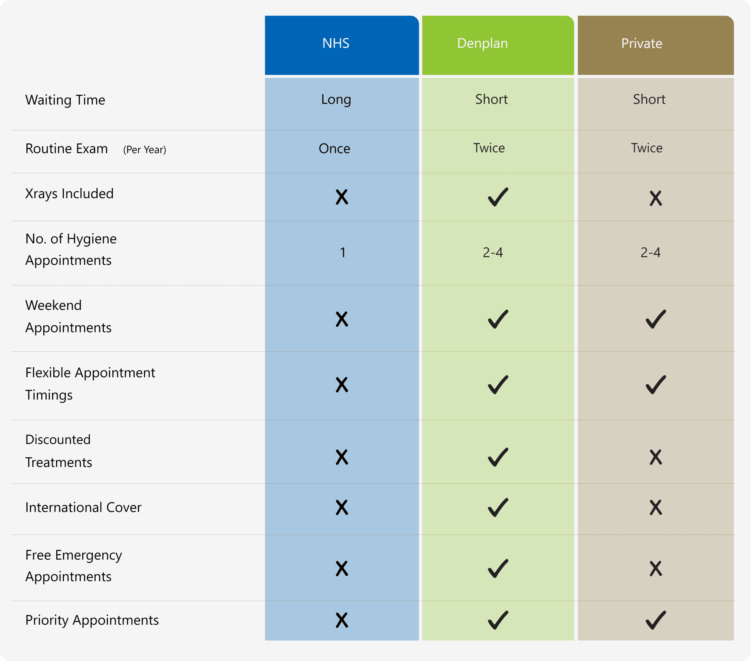 DIFFERENCES BETWEEN NHS, DENPLAN & PRIVATE